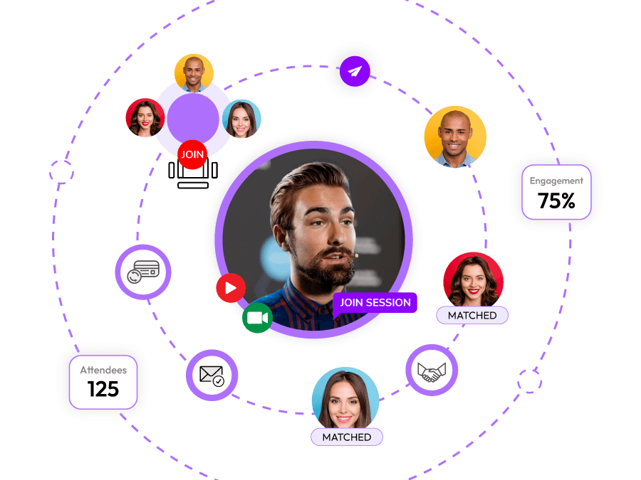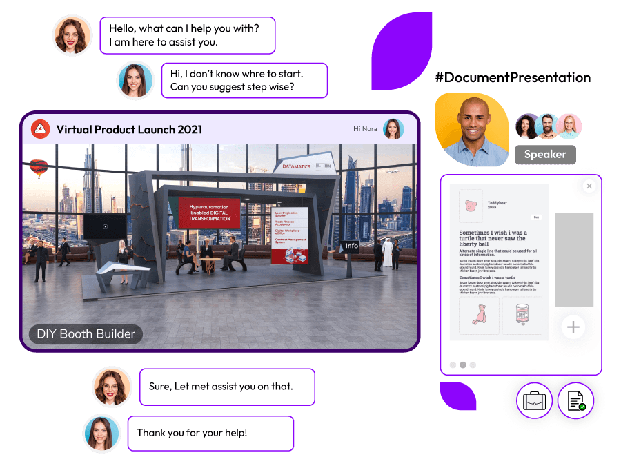 - Teleportation enables attendees to navigate their way throughout the event to access the most awaited session, visit the most promising booth or just anywhere throughout the platform.