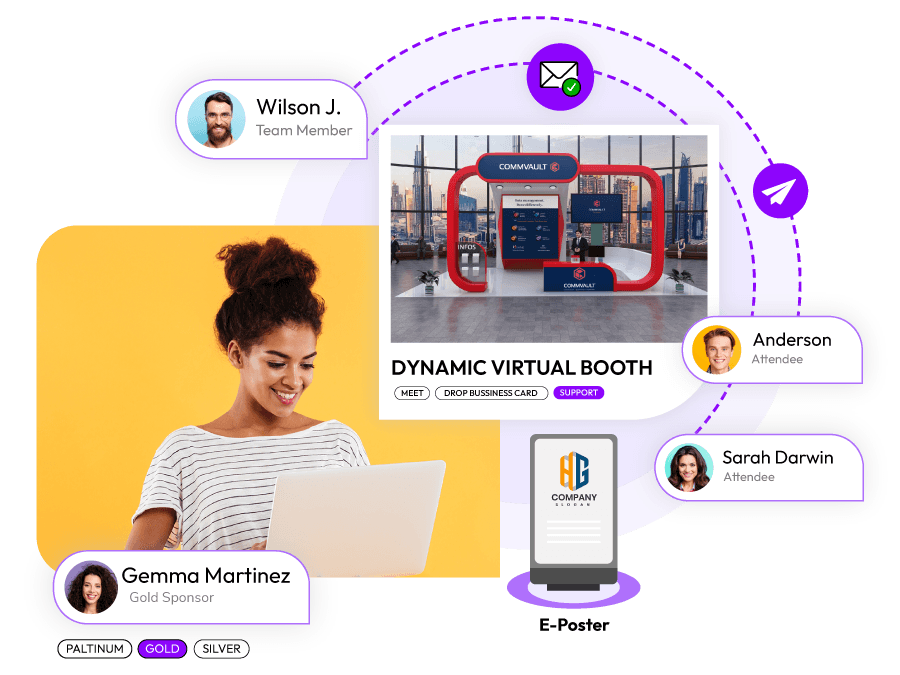 - Dynamic Exhibition Booths Design, display, & experience with our aesthetically pleasing dynamic exhibition booth feature and enhance your attendees/sponsors journey throughout the event.