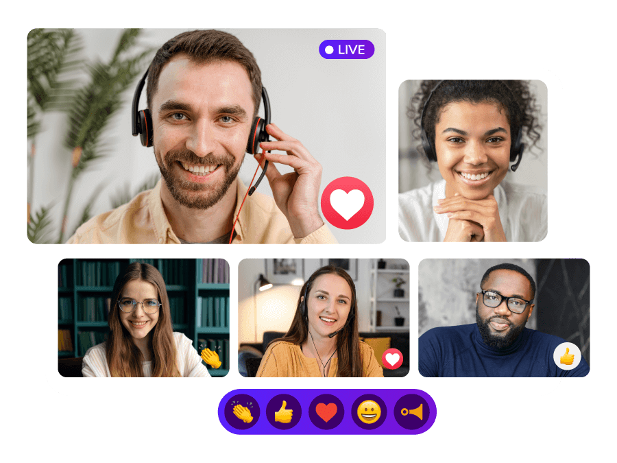 Create a buzz and excitement in your attendees. Select numerous emojis from heart, thumbs up, clap & hoot, in order to react during the virtual event. This element lifts the spirit of any show by capturing the audience reactions.