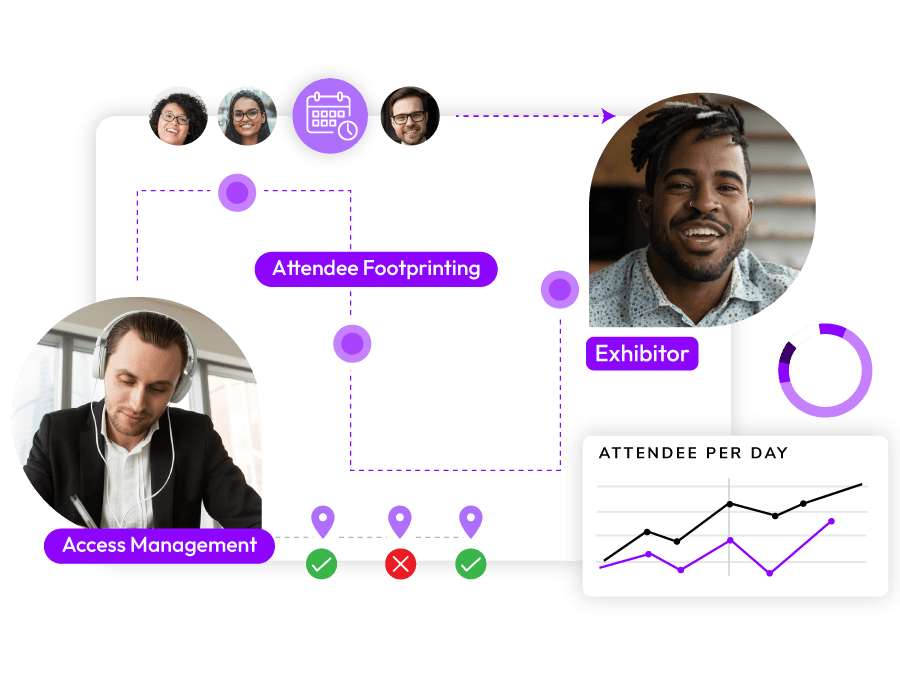 - Attendee Footprinting keeps a detailed track of every individual user journey throughout the event. This feature can be utilised to analyse which area is the most as well as least visited during a virtual exhibition and expo.