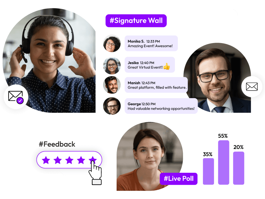 - Feedback Form can be pushed Manually in between the Events as a Notification Pop-Up as well as by covering the entire screen at the end of the event so that it does not miss the attention span of the attendees.