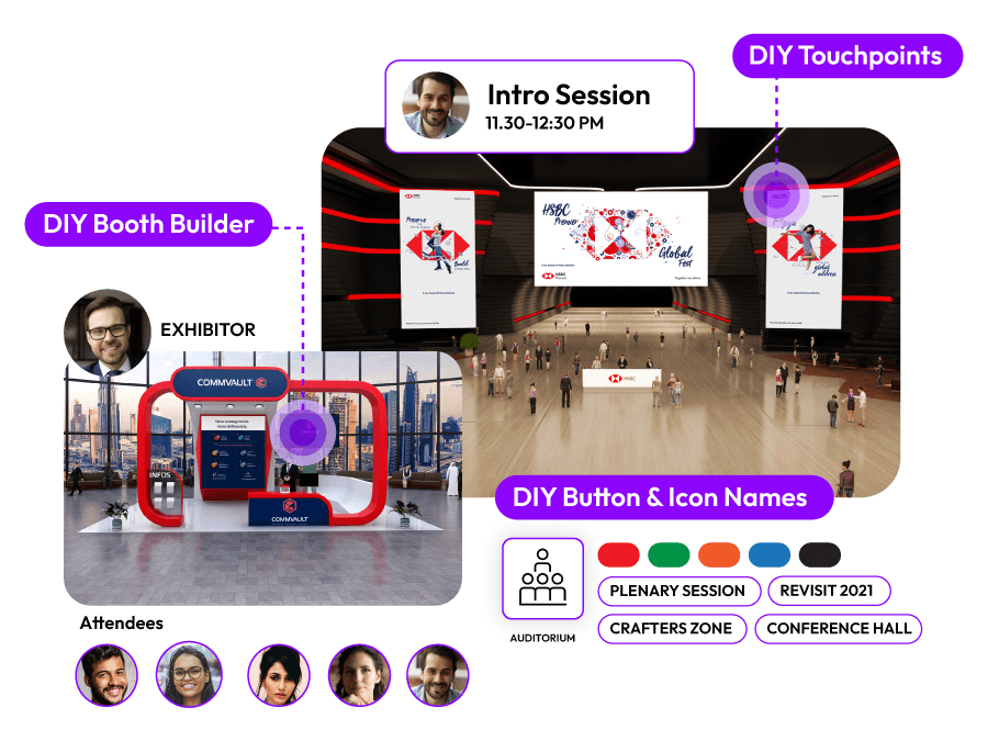 - DIY booth builder is redefining exhibition experiences. It allows hosts /exhibitors to build a virtual exhibition booth as per their likes & wants. Right from colour, text, tabs, banners etc.