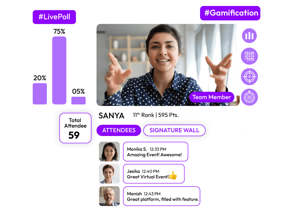 - Live Poll to take instant surveys from participants and gain their valuable insights. This enables them to communicate efficiently and boosts their engagement undeniably.